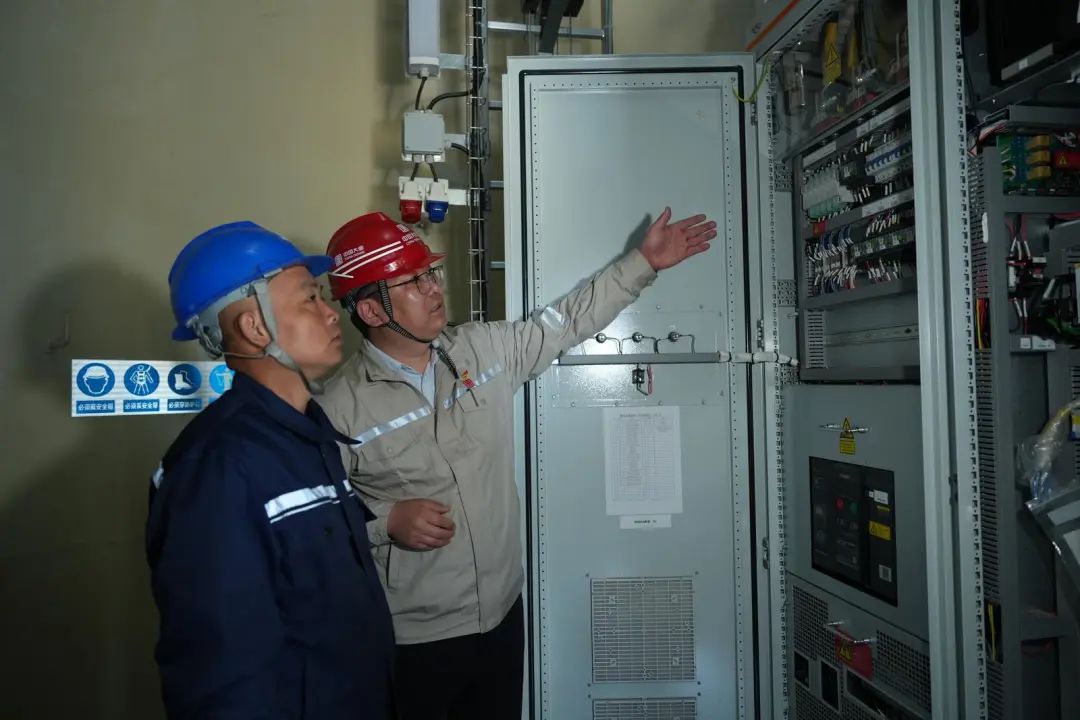 走进项目现场,几名工作人员正身着专业工作服、佩戴安全帽,在风电机组基座处有条不紊地忙碌。他们手持检测设备,仔细检查每一颗基础铆栓的紧固程度,用扳手精细调整,确保每一处连接牢固可靠。机舱内空间虽狭窄,技术人员仍专注盯着操作平台显示屏,核对数据、操作按钮,确保各部件正常运转。
