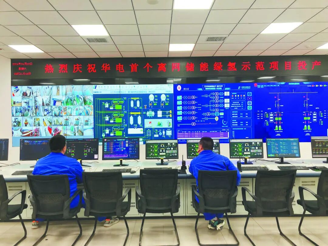 辽宁华电铁岭25兆瓦风电离网储能制氢一体化项目中央控制室。
