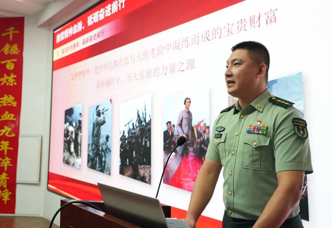 开学第一天,铁岭市第二中学邀请驻军某部政治指导员为同学们做爱国主义主题教育课,课上讲述了抗战故事,阐释伟大抗战精神的内涵,引导学生铭记历史,筑牢民族记忆,传承红色基因。