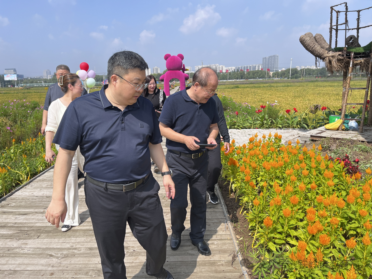 辛彦军一行先后实地考察了基地稻田画观赏区、水稻种植区、花卉观赏区、中草药种植区、劳动实践区、游乐设施区,详细了解了基地科普教育、研学实践、休闲文旅等方面的特色,并听取了基地负责人关于基地基本情况、课程体系建设、场地设施设备、安全保障措施等工作情况的汇报。