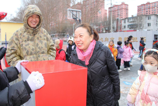 11月27日早上,孩子们走进校园,等在门口的老师手中托着盲盒,孩子们有序从盲盒中抽取爱心卡,一些小学生还把自己精心制作的感恩卡送到门卫、保安、食堂等岗位的工作人员及教师手中,读着陌生或熟悉的祝福,校园里满是温馨笑意。在大课间,同学们观看感恩视频展播,并开展爱心卡合影集中亮相和爱心交流活动,吸引师生驻足观赏。