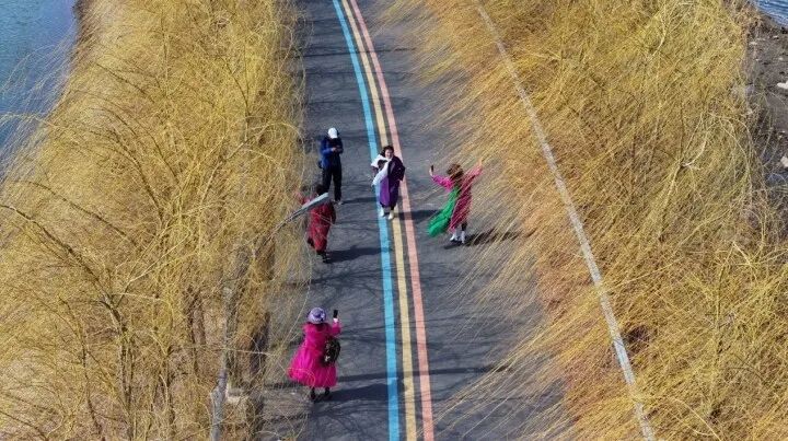当三月的春风掠过柴河岸边,千丝万缕的鹅黄便成了悬垂的“竖琴”,弹奏出簌簌的春声。“彩虹路”上,阳光正为舞者裁剪“裙摆”,自行车铃铛摇碎斑驳树影,打卡拍照的快门声惊起一串雀跃的啼鸣。