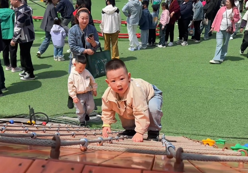 为了让游客拥有更丰富的游玩体验,友谊村今年新添了不少游乐设施,无动力游乐场更是成了孩子们的欢乐天堂。假期里,孩子们在游乐场上嬉笑玩耍,家长们则在一旁微笑陪伴,温馨的场景随处可见。无论是色彩斑斓的跷跷板旁还是不远处的高空秋千都排起了长长的队伍。