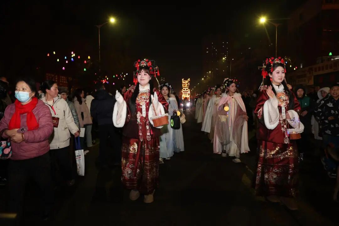 2月10日晚,银州区花车巡游热闹起航。从金帝酒店出发的巡游队伍沿市府路、广裕街一路欢歌前行,麒麟花车、舞龙舞狮、民俗方阵与定点文艺演出轮番登场,终点大商新玛特门前璀璨烟花腾空绽放,让整座城市沉浸在红火、热闹、喜庆的新春氛围里。