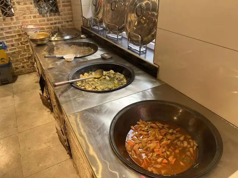 推开大食堂的门,浓郁的乡村气息扑面而来。墙角砌着老式土灶台,黝黑的铁锅锃亮如新,仿佛还冒着旧时农家饭菜的香气;墙上贴着报纸,屋里烧着火炕……每一处都透着原汁原味的农村生活气息。更有意思的是,这里的包房都以周边村名命名,“夏家楼村”“前后屯村”的门牌挂在门上,让食客仿佛走进了邻里乡亲的家中。