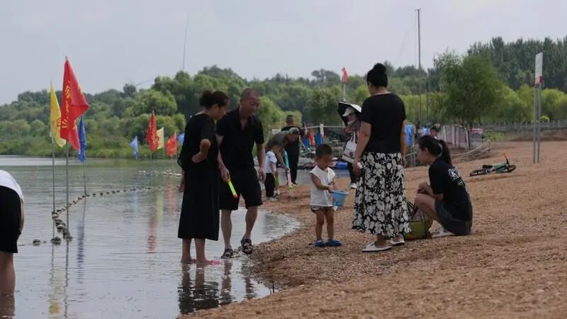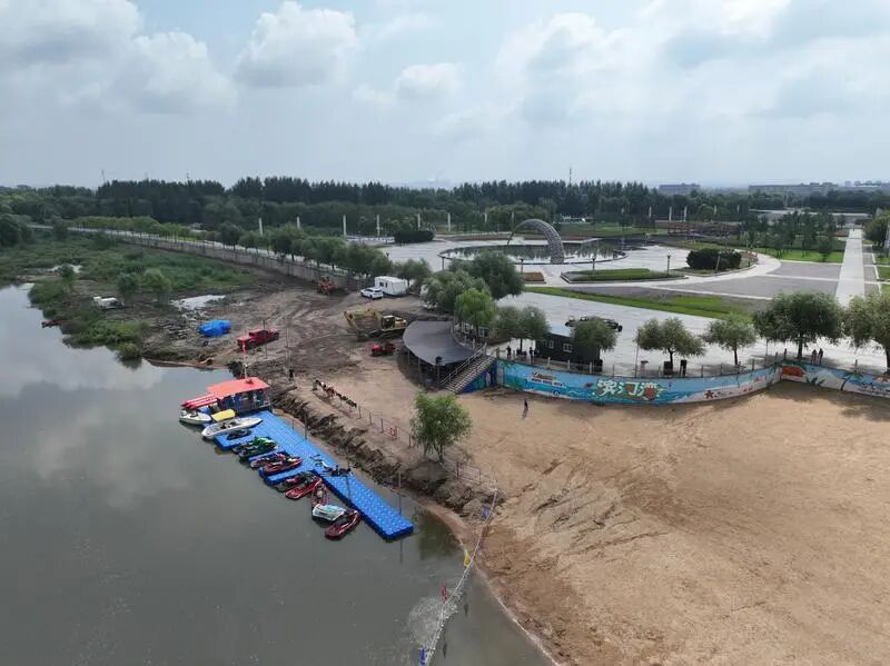 开原市滨河湾农文旅综合体建设项目负责人张福海介绍,滨河湾沙滩的建设进程刚刚过半,就已经吸引了众多市民前来纳凉消暑。截至目前,秋千、水艇等设施都已投入使用,后续还将优化沙质、增设水上项目。