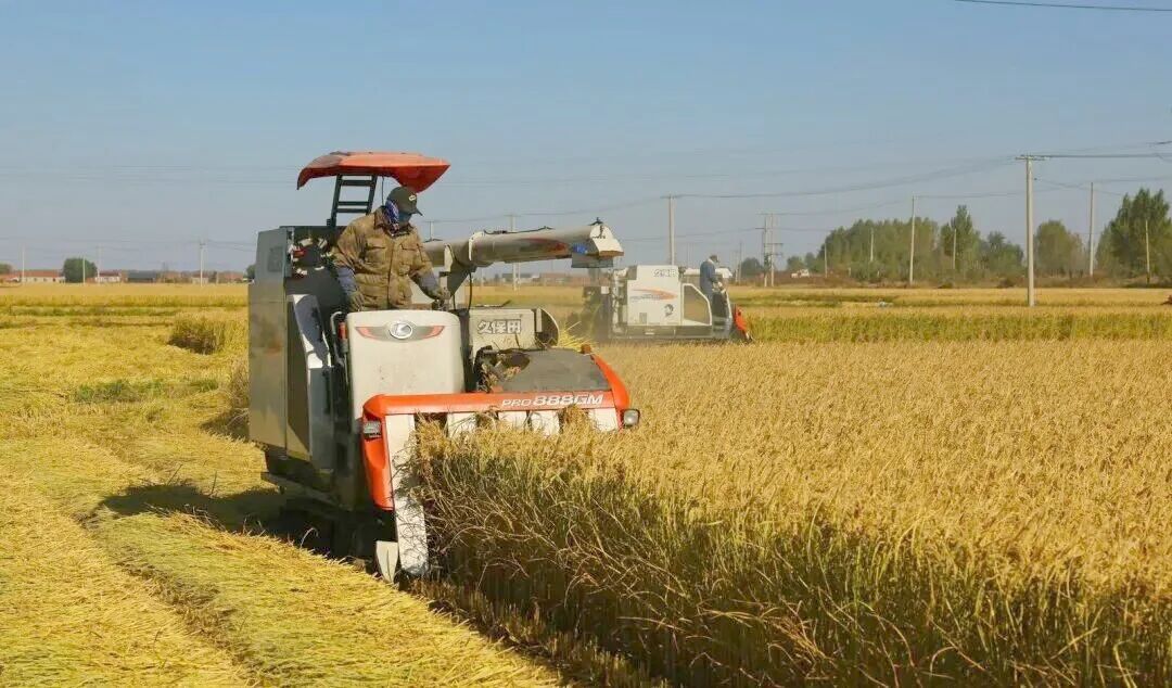 “今年墒情好,技术跟得上,你看这稻穗,粒粒饱满!”金利家庭农场的负责人李国伟抓起一把刚收割的稻谷,难掩内心激动,“我们这2000亩地,全是‘稻花香2号’,品质特别好。现在抢收,一天一台机器能收40到50亩,每天都有四五台机器同时下地,确保颗粒归仓!”