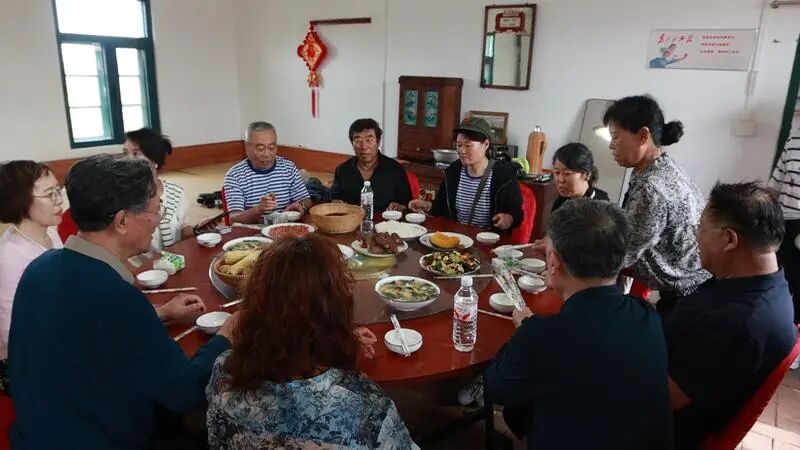 组织得当,厨房运行有序,不一会儿,饭菜摆上桌,返乡知青们围坐在一起,品尝家的味道。
