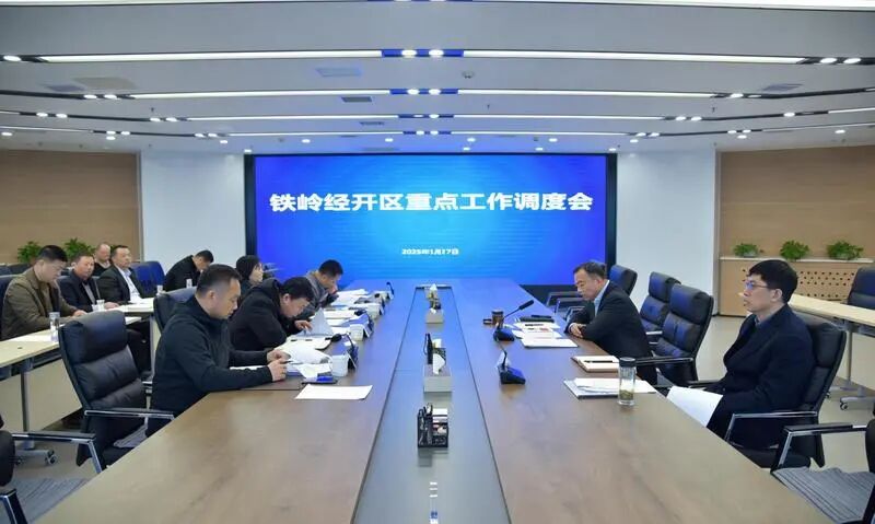 铁岭经开区重点工作推进会议现场,参会人员认真聆听部署。