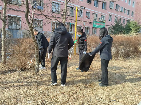 活动现场,志愿者们分工协作、分组行动,两两结对、默契配合。大家手持垃圾夹、拎着垃圾袋,穿梭在小区绿化带、楼前屋后、边角死角,弯腰细致捡拾散落塑料袋、烟头、各种杂物和枯枝落叶,不放过一处盲区、不漏掉一个死角。经过一番忙碌,所有捡拾的垃圾都被统一归集、分类投放至指定垃圾桶,实现清理一处、干净一处、整洁一片。红马甲的身影成为小区里一道亮丽的风景线。
