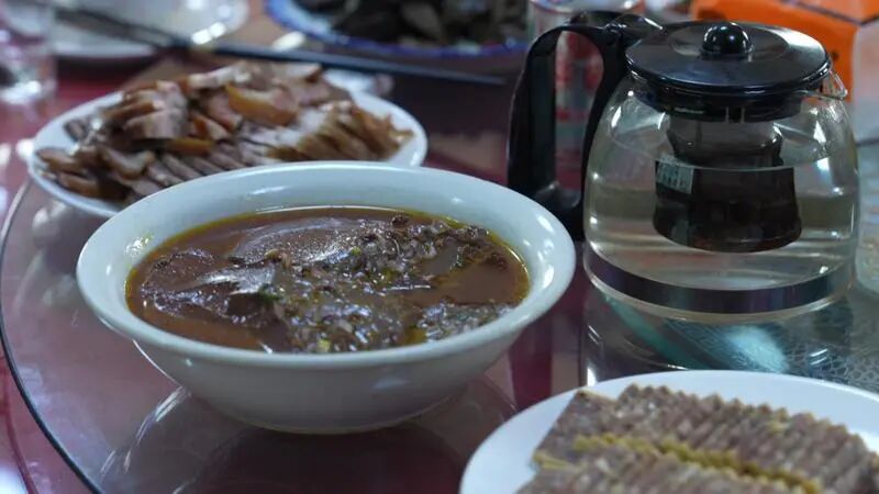 炖煮时,还要按顺序加入血肠和粉条,血肠必须是当天现灌的黑猪血,切厚片下锅煮至微卷,口感嫩而不碎;粉条则选用本地红薯粉,泡软后铺在锅底,吸收肉汁与酸菜汤的精华,出锅时根根入味。