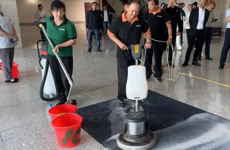 赛事前,保洁队开展了为期一个月的系统培训,从员工安全防范到单擦机操作,从玻璃清洁流程到设备维护技巧,确保每一位参赛者都“懂规范、会操作、能出彩”;房产维护科电工先过笔试关,以“理论+实操”的双重考核,夯实专业基础。
