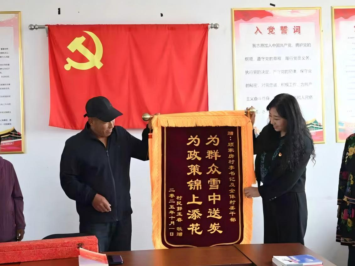 铺设柏油路那天,村里正在会议室举办党日学习活动,几名村民突然“闯”进来,看到在场党员转向他们的目光,带头的郭玉春赶紧解释道:“俺们不是来上访告状的,村里给俺们铺路办好事,送锦旗表达一下心意。”随即,几位村民打开锦旗,锦旗上镶绣着“为群众雪中送炭 为政策锦上添花”。紧接着,几位村民还主动坐下来聊起了村里办实事的点点滴滴,表达着对顾家房乡村振兴的憧憬和期待。对全村的党员来说,党日活动被打断10分钟,却无疑是一次最有意义的生动党课。