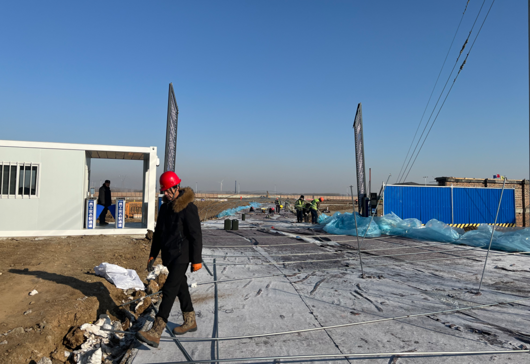 辽宁华电调兵山45万千瓦风电制氢耦合绿色甲醇一体化示范项目施工现场。